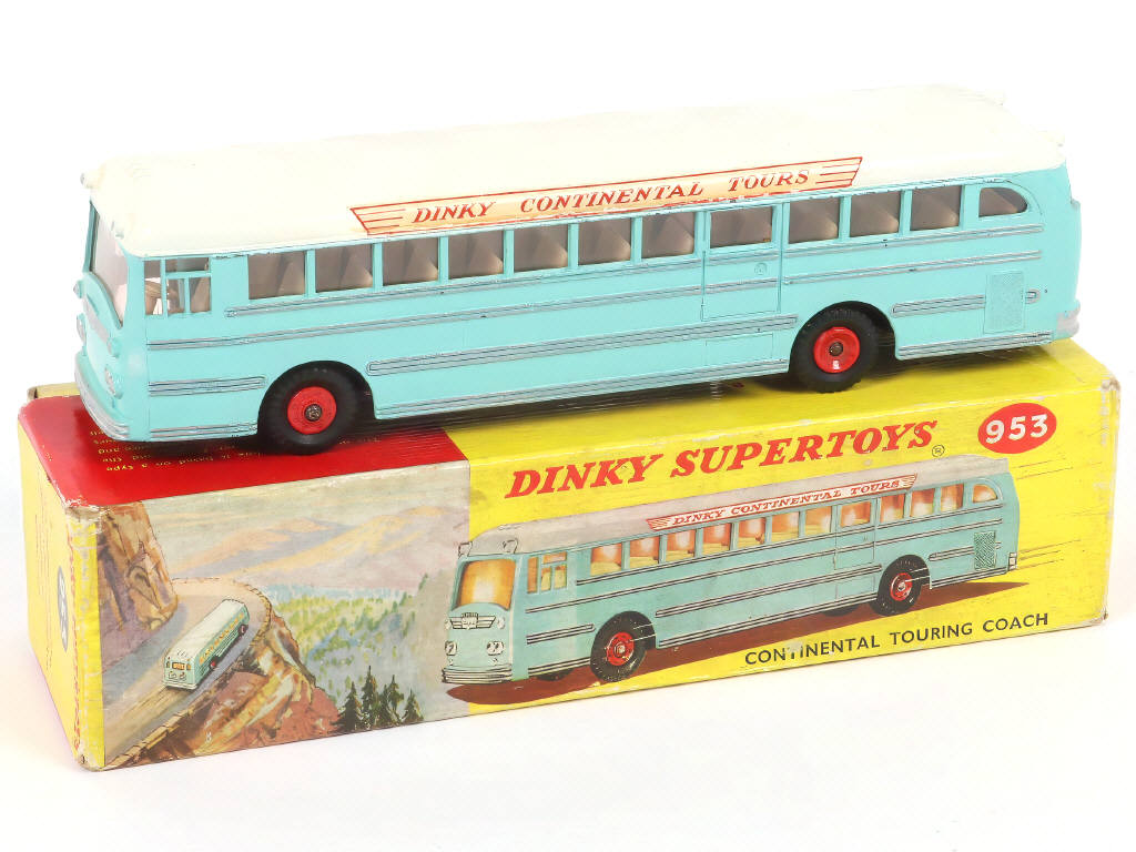 DINKY TOYS (GB) 953 WAYNE Autocar 'DINKY CONTINENTAL TOURS' turquoise & blanc