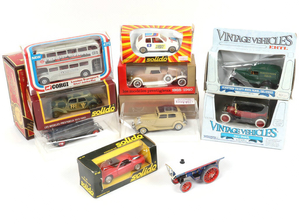on y retrouve notamment les marques : SOLIDO, CORGI TOYS & DUBRAY - quelques boîtes froissées