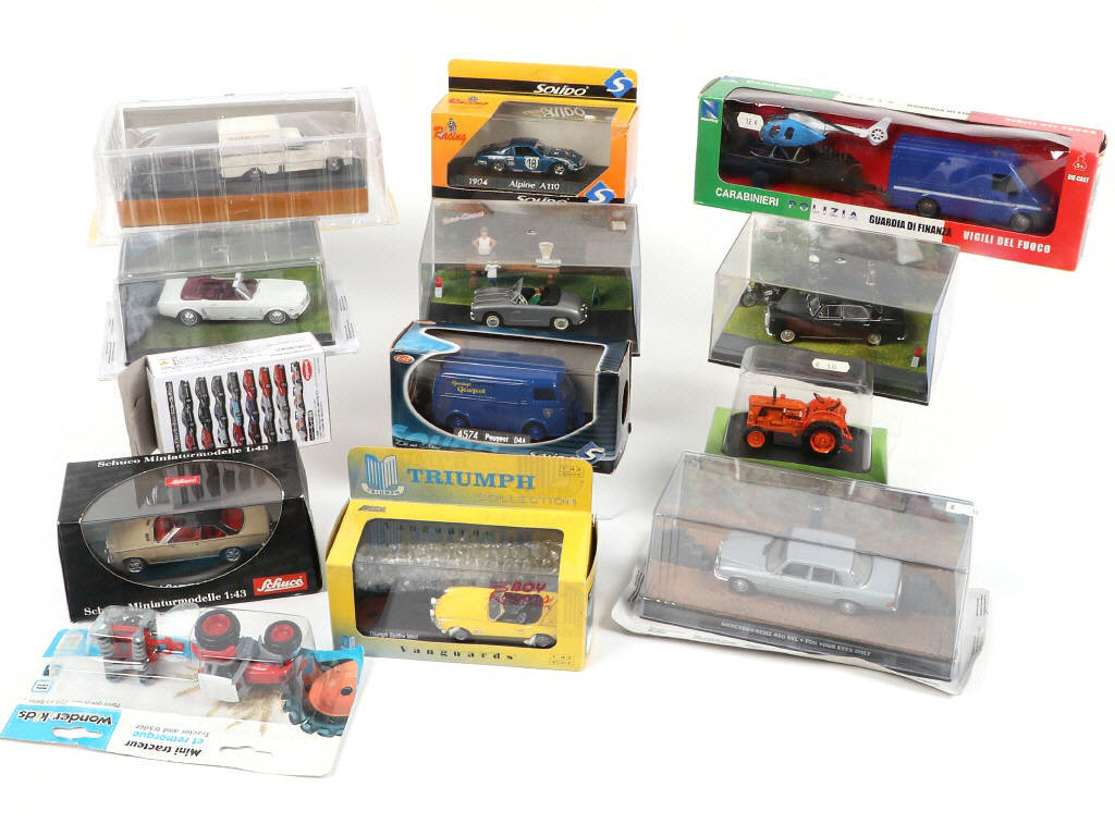 différentes échelles - comprend notamment les marques : SOLIDO, VANGUARDS & SCHUCO - boîtes en état 'b' à 'c' - possibilité de petits manques & parties cassées