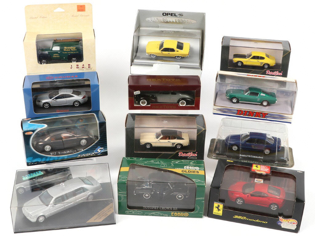 comprend notamment les marques : EBBRO, VITESSE, SOLIDO, DINKY & REXTOYS - boîtes en état 'b' à 'c' - possibilité de petits manques & parties cassées