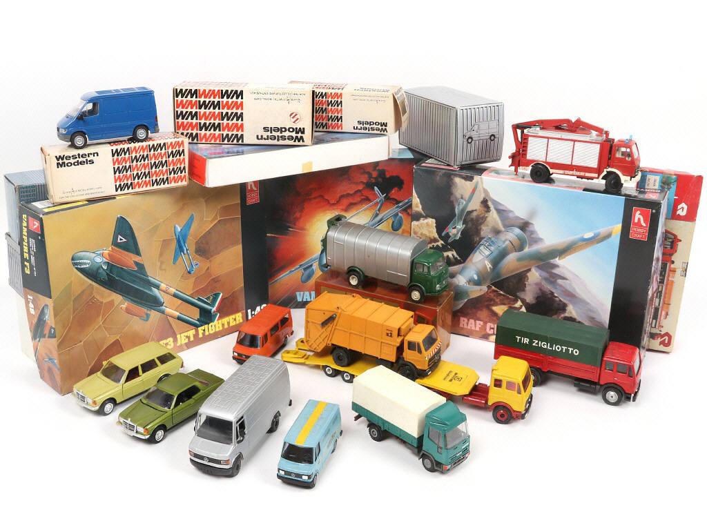on y retrouve notamment les marques : WESTERN MODELS, CONRAD & TEKNO - quelques manques & parties cassées sur certains exemplaires - 7 exemplaires à monter (complets ?) - les boîtes présentées sont en état 'b' & 'c' (certains exemplaires sans boîte)
