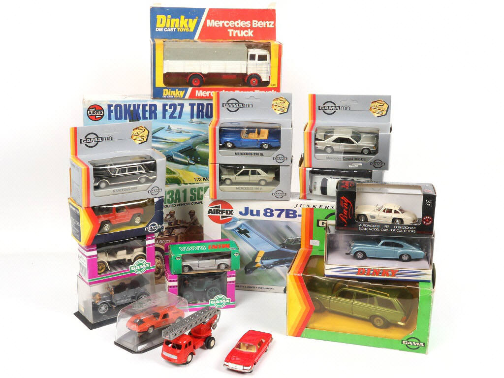 on y retrouve notamment les marques : AIRFIX, GAMA & DINKY TOYS - quelques petits manques & parties cassées sur certains exemplaires - 3 exemplaires à monter (semblent complets) - les boîtes présentées sont en état 'b' & 'c' (certains exemplaires sans boîte)