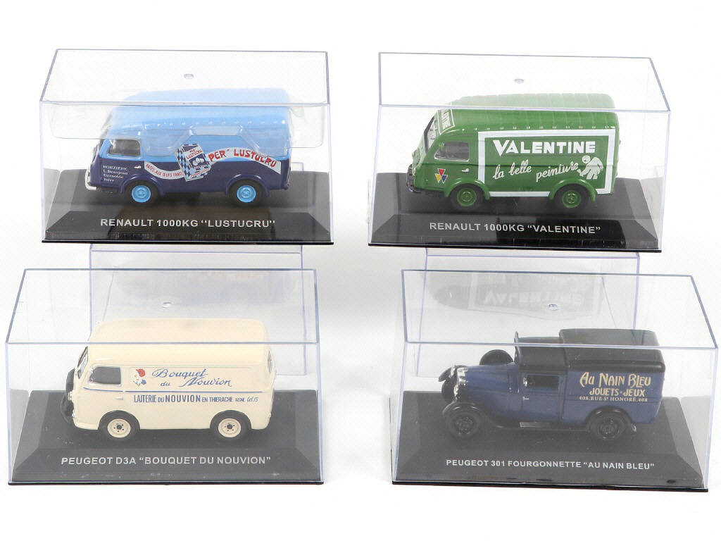 comprend notamment les modèles : RENAULT 1000KG 'VALENTINE', PEUGEOT 301 Fourgonnette 'Au Nain Bleu' & PEUGEOT D3A 'Bouquet du Nouvion' - boîtes en état 'a' à 'c'