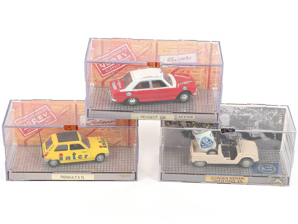 comprend les modèles : PEUGEOT 504, RENAULT 5 TL & CITROËN MEHARI - boîtes en état 'a' à 'b'