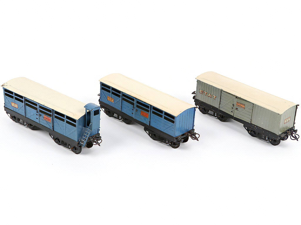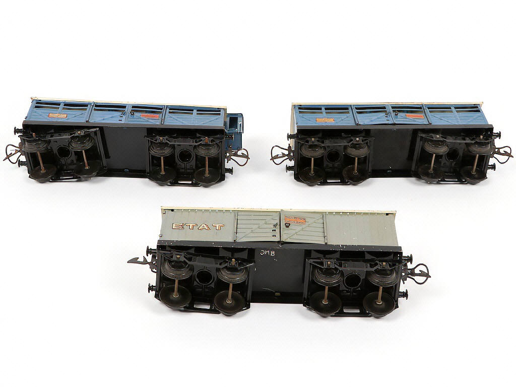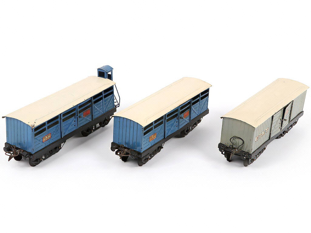 HORNBY 'O' (FRANCE) Ensemble de 3 wagons Transport de Chevaux gris & bleu