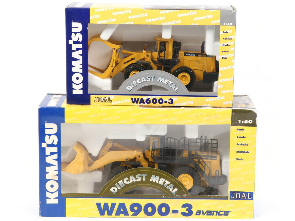 échelle : 1/50ème - KOMATSU/JOAL - comprend les modèles : WA 600-3 'Chargeuse à billes' & WA 900-3 'Pelle chargeuse'