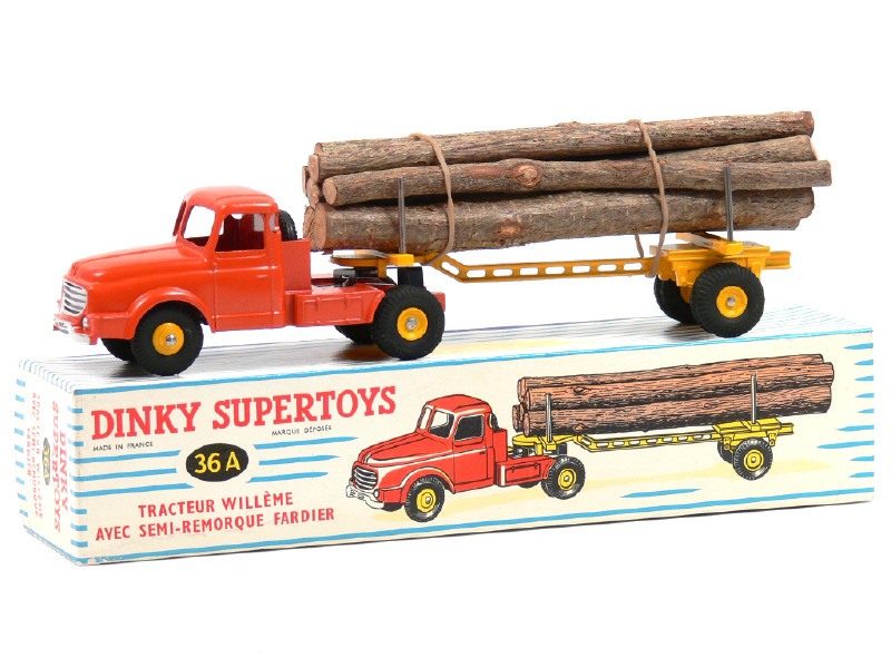 DINKY TOYS (FRANCE) 36A WILLEME Fardier (version avec jantes convexes & remorque ajourée) orange & jaune