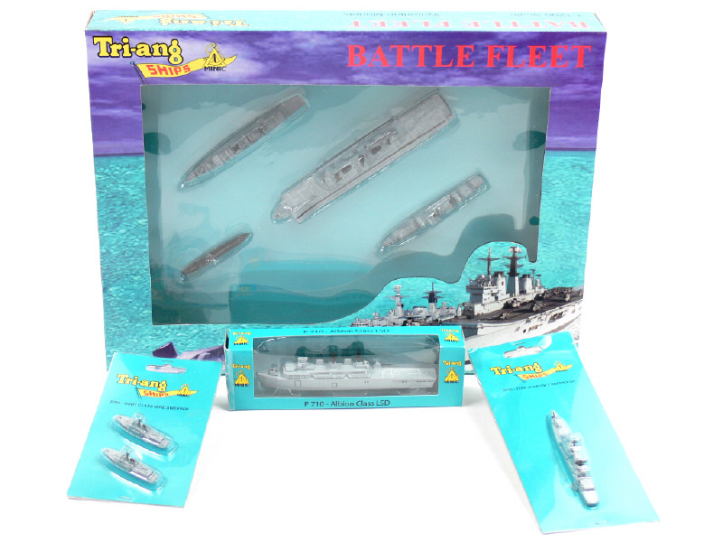 échelle 1/1200ème - contient : INVINCIBLE CLASS CARRIER, TYPE 22 BATCH 3 FRIGATE, TYPE 42 BATCH 2 DESTROYER, TRAFALGAR CLASS SUBMARINE - avec cales de boite - on y joint ALBION CLASS LSD (un petit élément à recoller), TYPE 42 BATCH 1 DESTROYER & HUNT CLASS MINE SWEEPER (2 exemplaires) - 3 modèles sous blister jamais ouverts & un autre avec boîte en état 'c'