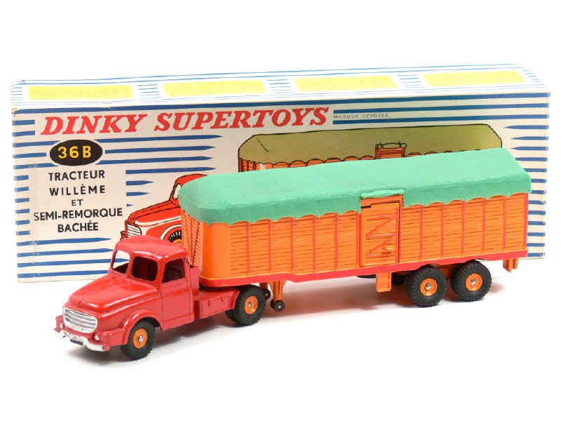 DINKY TOYS (FRANCE) 36B WILLEME Semi-remorque bâché (version avec jantes concaves) rouge & orange, bâche verte