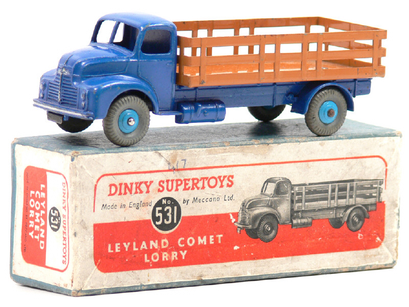 DINKY TOYS (GB) 531 LEYLAND COMET Plateau à ridelles ajourées bleu moyen & marron clair