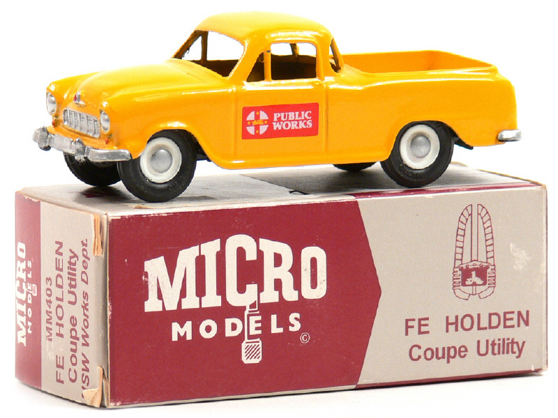 MICRO MODELS (NOUVELLE-ZELANDE) g/38 HOLDEN FE Pick-up 'PUBLIC WORKS' jaune d'or