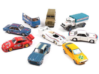 miniatures reproduisant les modèles : PEUGEOT, PORSCHE (manque rétroviseurs), BMW, LAND ROVER, IVECO, FORD & ALFA ROMEO