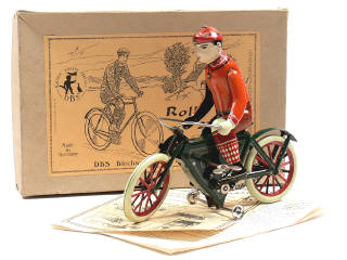 DBS (ALLEMAGNE) 230 ROLLI Cycliste en tôle lithographiée vert, orange, grenat & gris