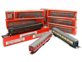 JOUEF 'HO' (FRANCE) Ensemble de 9 wagons de voyageurs & un wagon postal