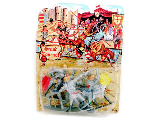 hauteur 6 cm - comprend 6 soldats du Moyen-Age - réalisation en plastique - sur socle