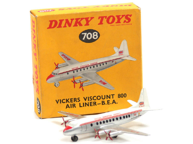 DINKY TOYS (GB) 708 VICKERS VISCOUNT 'BRITISH EUROPEAN AIRWAYS' gris métal, crème & rouge