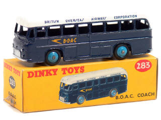 DINKY TOYS (GB) 283 Bus 'B.O.A.C' bleu foncé, toit blanc & jantes bleu vif