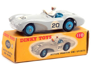 DINKY TOYS (GB) 110 ASTON MARTIN DB 3 S gris clair, intérieur & jantes bleus