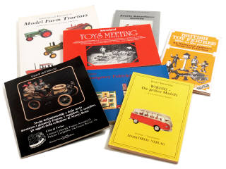 comprend : 'MODEL FARM TRACTORS' de Raymond E. CRILLEY Sr & Charles E. BUKHOLDER, 'TOYS MEETING' de Marco BOSSI, 'EMERGENCY VEHICLES' de Edward FORCE, 'JOUETS MECANIQUES ANCIENS' de Margot BRAUCH & Albrecht BANGERT, 'BRITISH TOY FIGURES 1900 TO PRESENT' de Norman JOPLIN, 'WIKING DIE GROSSEN MODELLE' de KOCH & SCHWÖRZER & 'GIOIELLI DELL'INFANZIA' de Daniela PIAZZA - ouvrages en différentes langues