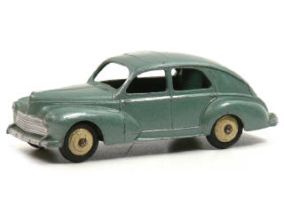 DINKY TOYS (FRANCE) 24R PEUGEOT 203 Petite lunette arrière (version avec intérieur de toit lisse & feu de stop) vert métal, jantes crème