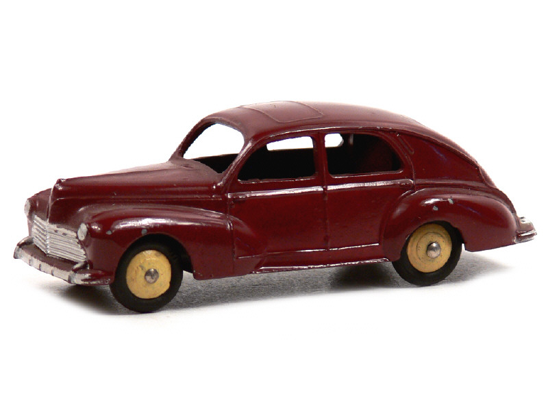 DINKY TOYS (FRANCE) 24R PEUGEOT 203 Petite lunette arrière (version avec intérieur de toit lisse & feu de stop) grenat, jantes crème