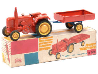 PAYA (ESPAGNE) 853 LANZ IBERICA-S.A Tracteur agricole en tôle peinte avec remorque-benne orange & jaune