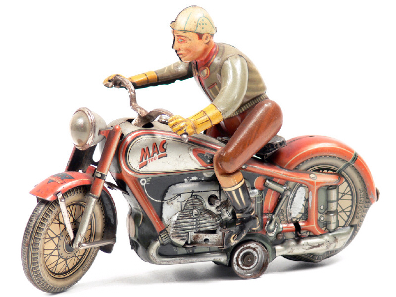 ARNOLD (ALLEMAGNE) 700 MAC 700 Moto avec pilote en tôle lithographiée rouge & gris