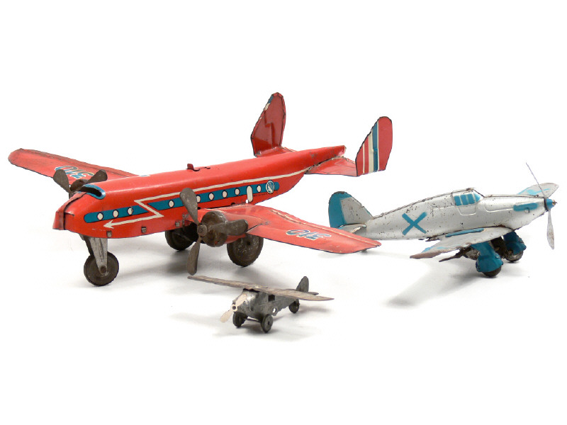 envergure 12,5 cm - fabrication en plomb & en tôle des années 1930 - traces d'oxydation sous l'aile