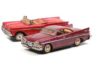 longueur 23 cm - moteur à pile (à revoir) - avec système de capote rétractable - carrosserie poussiéreuse - chromes des baguettes latérales ternis