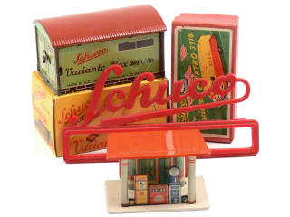 on y joint une petite station-service en tôle lithographiée (de marque indéterminée), une boîte vide de la référence 3116 avec notice & sachet contenant un câble de télécommande & un petit panonceau de vitrine en plastique (une partie cassée)