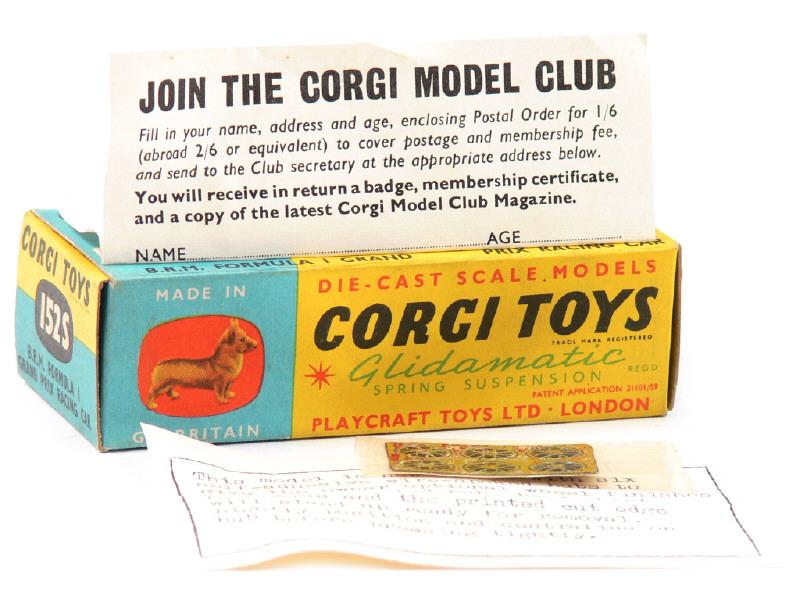 avec bulletin d'inscription au 'CLUB CORGI', notice explicative & planche de 6 enjoliveurs autocollants