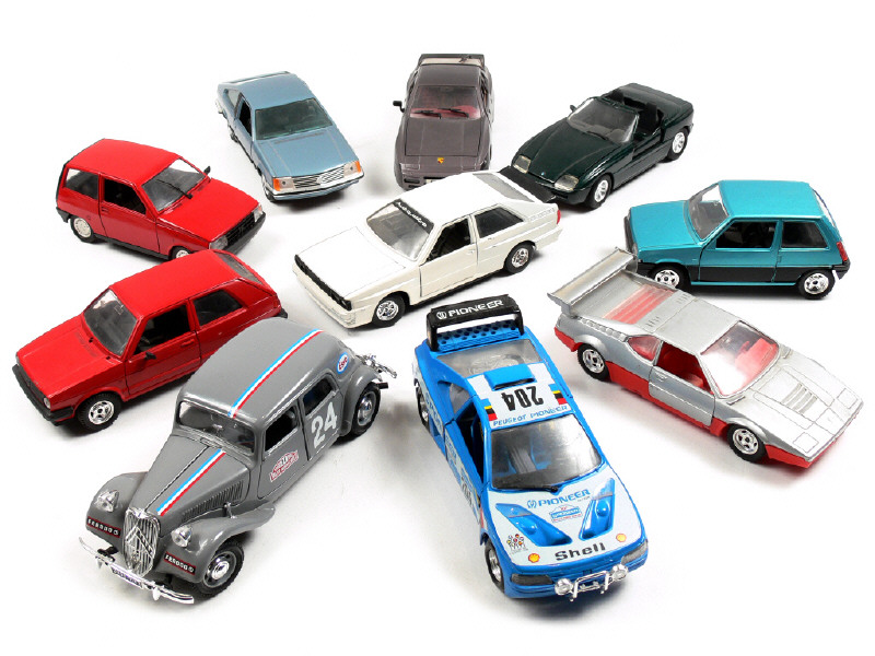 états de 'B' à 'C' - miniatures reproduisant les modèles : AUTOBIANCHI, OPEL, VOLKSWAGEN, BMW, PORSCHE, CITROËN, AUDI, RENAULT & PEUGEOT- on y retrouve les marques : BBURAGO, MAJORETTE, POLISTIL, GAMA & REVELL - quelques petits manques