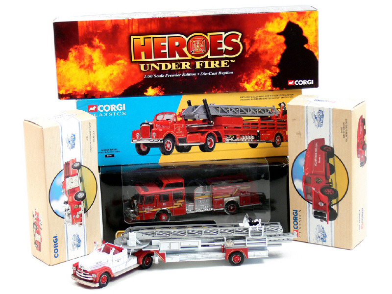 avec dépliant présentant les modèles de la marque, un catalogue incluant les caractéristiques & historique du modèle, un certificat d'authenticité, un carton de recherche sur les personnes ayant utilisé certains véhicules de pompiers & une étiquette de prix