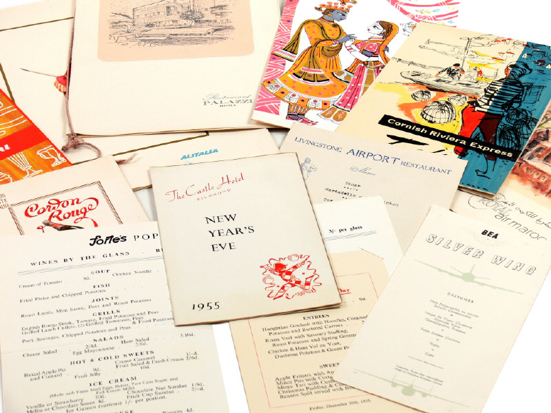 DIVERS Ensemble de 29 menus de restaurants des années 1950 & 1960 & de compagnies aériennes