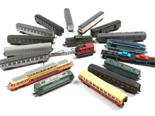 états de 'B' à 'F' - comprend : des motrices, des wagons & des accessoires divers - on y retrouve les marques : LIMA, TROBY, HORNBY & JOUEF