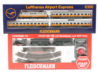 FLEISCHMANN 'HO' (ALLEMAGNE) 6350 Coffret de train de voyageurs 'LUFTHANSA AIRPORT EXPRESS' 2 tons de gris & jaune d'or