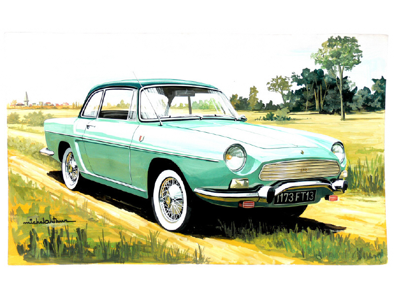 MICHEL ARTHUR (FRANCE) Peinture représentant une RENAULT CARAVELLE 2 tons de vert