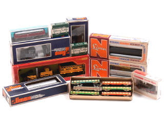 comprend : 4 locomotives à vapeur, 2 motrices, 10 voitures de voyageurs & 3 wagons - on y retrouve les marques ATLAS, LIMA & FLEISCHMANN - on y joint 2 boîtiers de commande à impulsions de la marque HORNBY, un coffret contenant une motrice & 5 voitures de voyageurs de la marque NOREV en tôle lithographiée & une locomotive de STEPHENSON de la marque HORNBY
