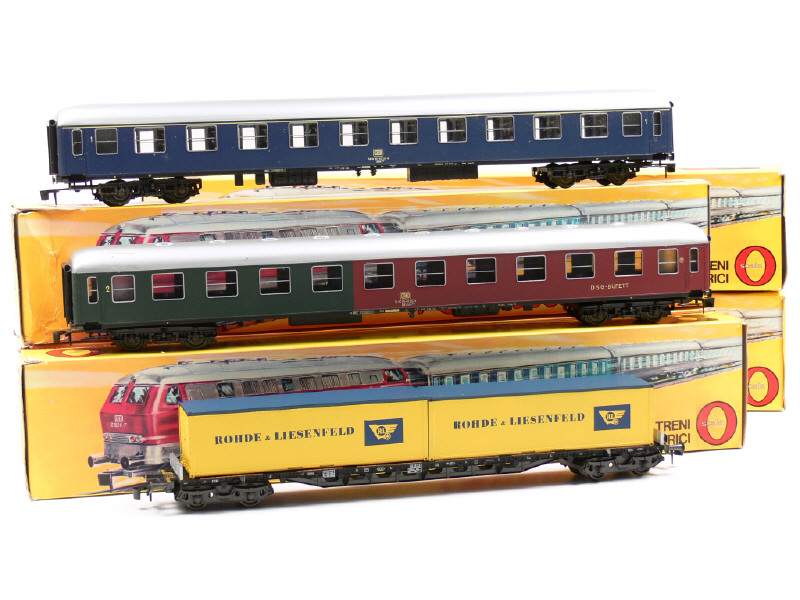 RIVAROSSI 'O' (ITALIE) Ensemble de 4 voitures de voyageurs & un wagon