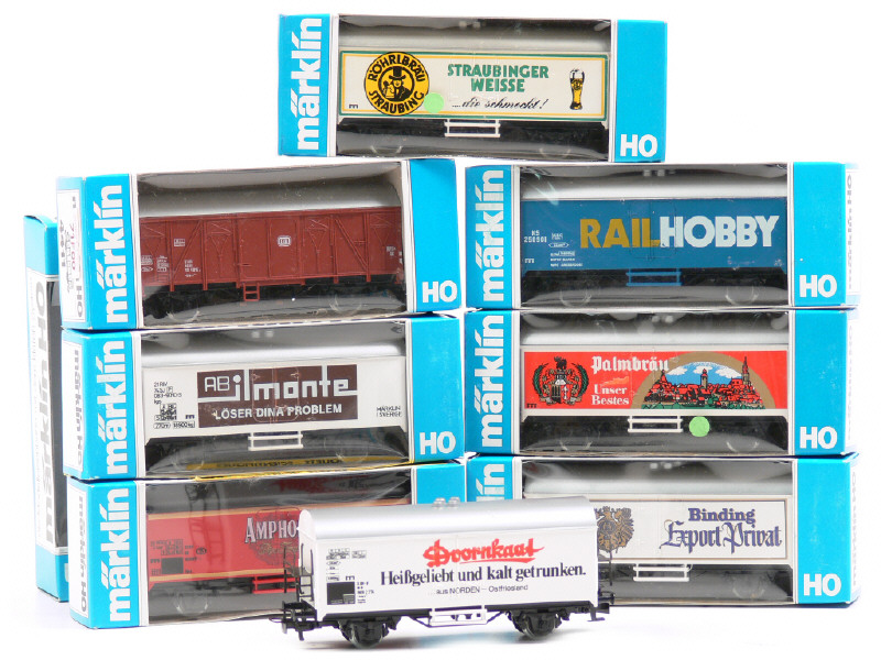 MÄRKLIN 'HO' (ALLEMAGNE) Ensemble de 8 wagons couverts