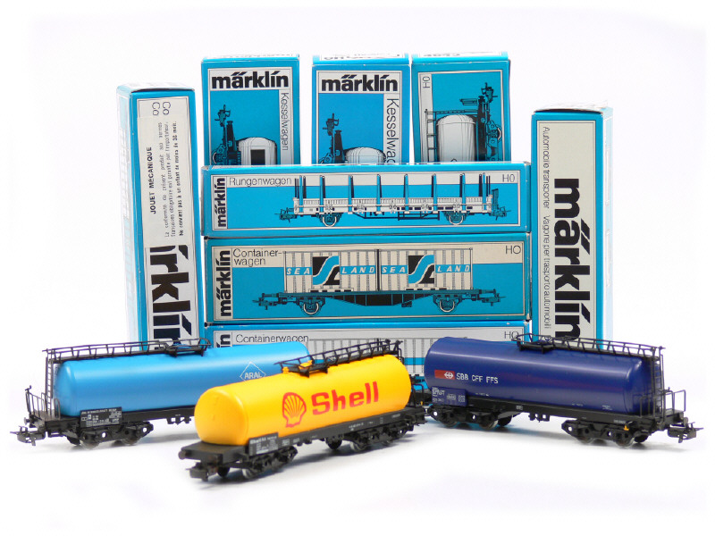 MÄRKLIN 'HO' (ALLEMAGNE) Ensemble de 8 wagons de marchandises