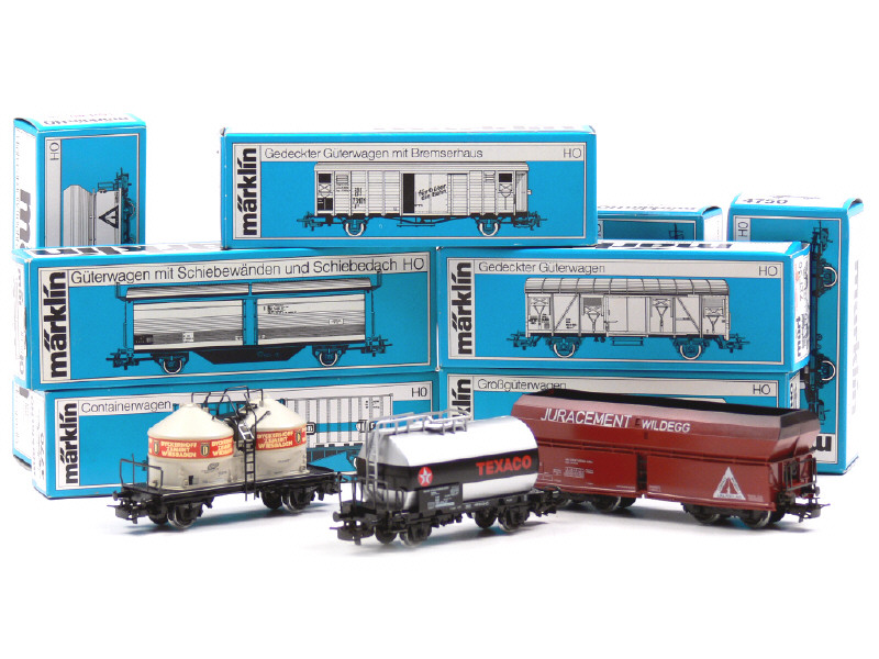 MÄRKLIN 'HO' (ALLEMAGNE) Ensemble de 8 wagons de marchandises