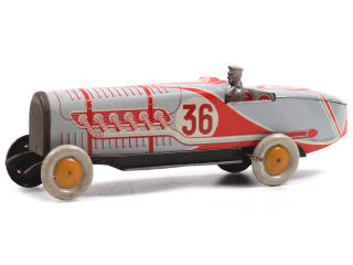 M.L. (FRANCE) 510.3 Auto de course en tôle lithographiée bleu ciel & rouge