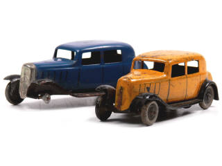 longueur 14 cm - moteur à friction (à revoir) - logo avec cygne & chevrons sur la malle arrière - modèle vendu à l'origine en boîte de 12 - manque calandre - ailes & marchepieds repeints