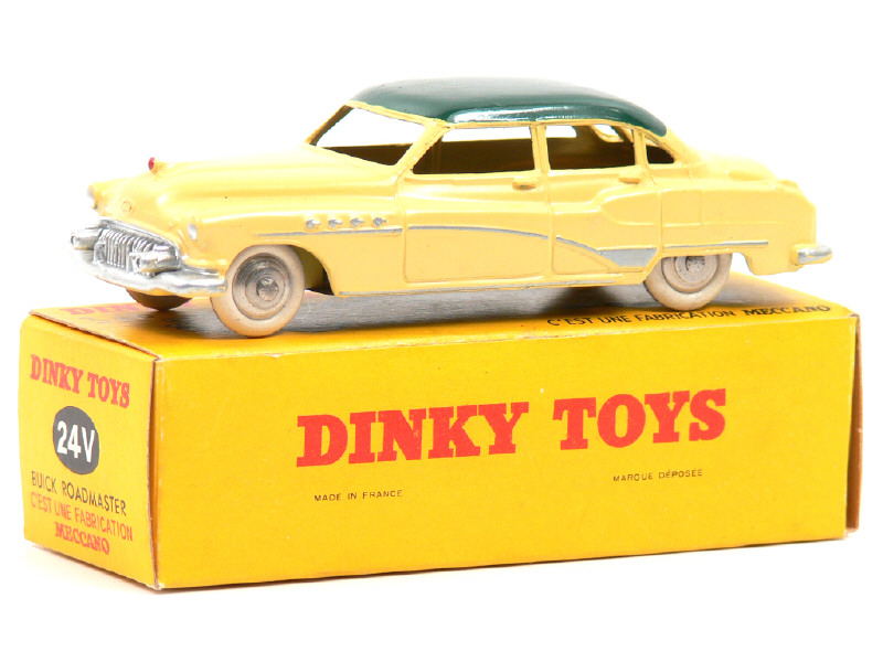 DINKY TOYS (FRANCE) 24V BUICK ROADMASTER (version avec intérieur de toit quadrillé & jantes chromées) jaune paille, toit vert