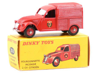 DINKY TOYS (FRANCE) 25D CITROËN 2CV Fourgonnette de pompiers rouge, jantes convexes rouges