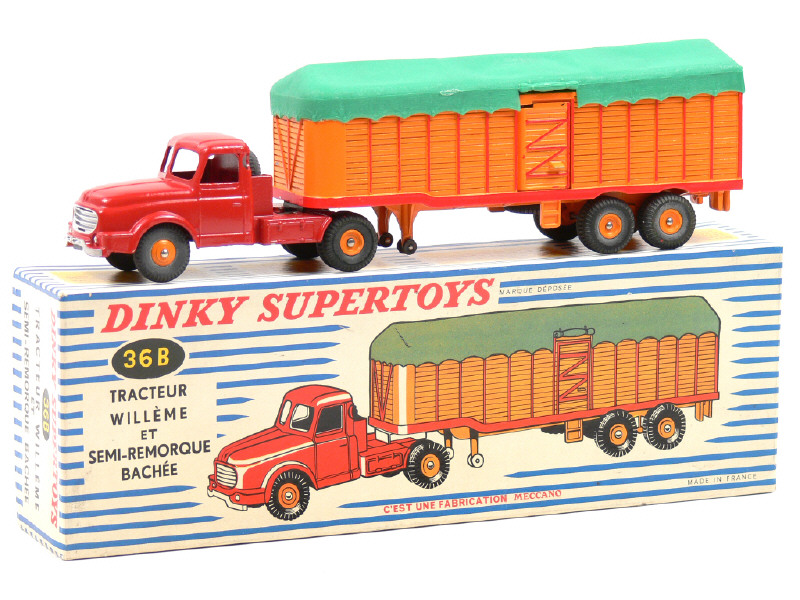 DINKY TOYS (FRANCE) 36B WILLEME Semi-remorque bâché (version avec jantes convexes) rouge & orange, bâche verte