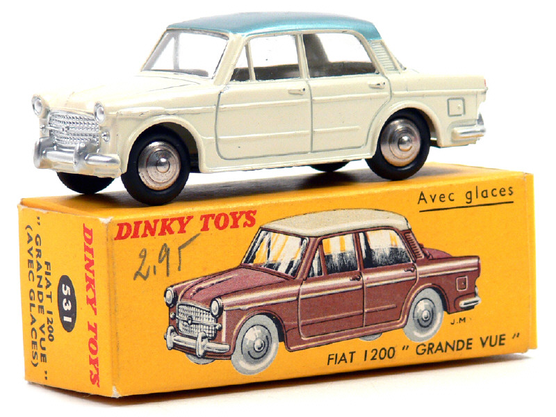 DINKY TOYS (FRANCE) 531 FIAT 1200 GRANDE VUE (version avec jantes convexes) crème, toit bleu métal