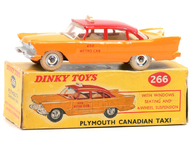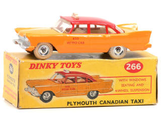 DINKY TOYS (GB) 266 PLYMOUTH PLAZA Canadian 'TAXI' jaune d'or & rouge