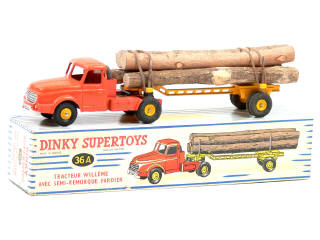 DINKY TOYS (FRANCE) 36A WILLEME Fardier (version avec jantes convexes & remorque ajourée) orange & jaune